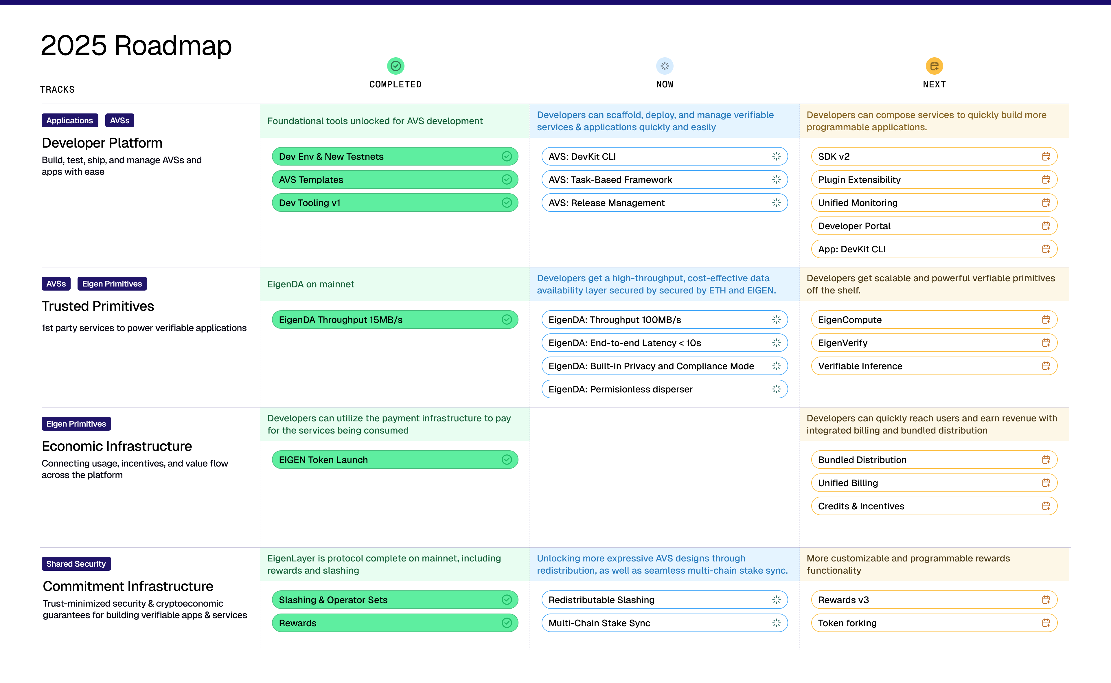 - Developer Platform: Tooling, CLIs, SDKs, APIs, and infrastructure to build, test, ship, and manage AVSs and Apps.